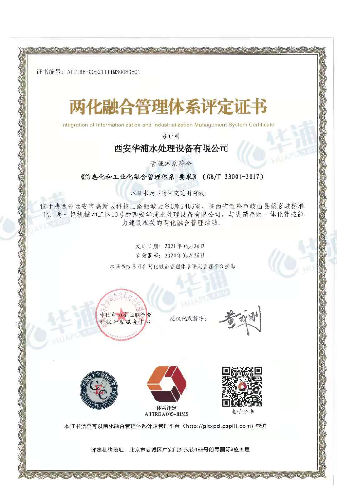 兩化融合管理體系評定證書